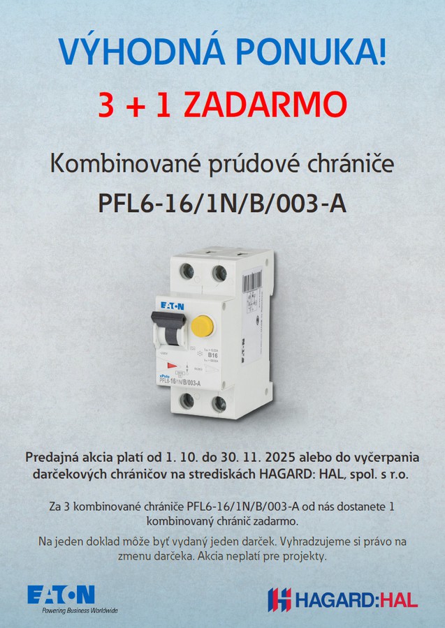 EATON predajná akcia 3+1. Nakúpte výhodne chránič EATON 112875. K trom zakúpeným dostanete jeden zadarmo.
